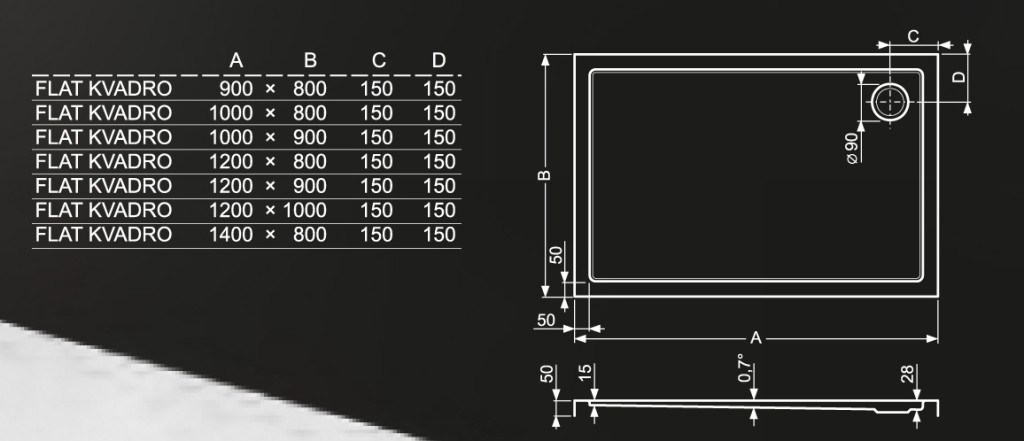 Zuhanytálca, Roltechnik Flat Kvadro 1500x750 szögletes :RT