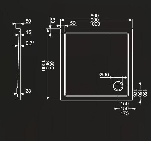 Zuhanytálca, Roltechnik Flat Kvadro 800x900 szögletes :RT