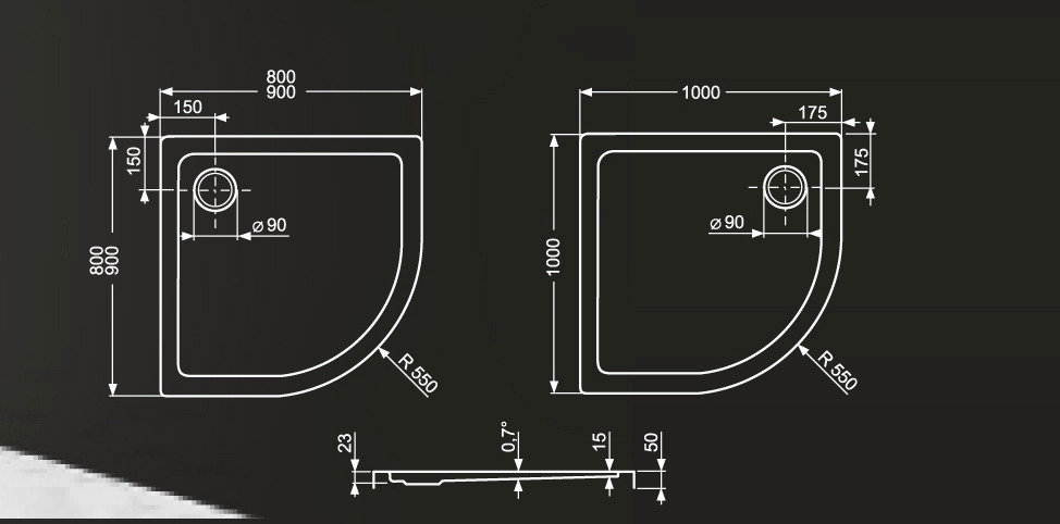 Zuhanytálca, Roltechnik Flat Round 1000x1000 íves :RT