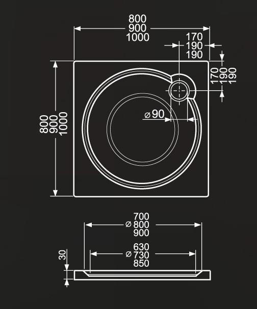 Zuhanytálca, Roltechnik Macao-M 1000x1000 szögletes :RT