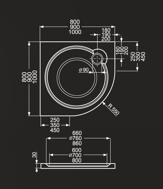 Zuhanytálca, Roltechnik Tahiti-M 900x900 íves Sanipro