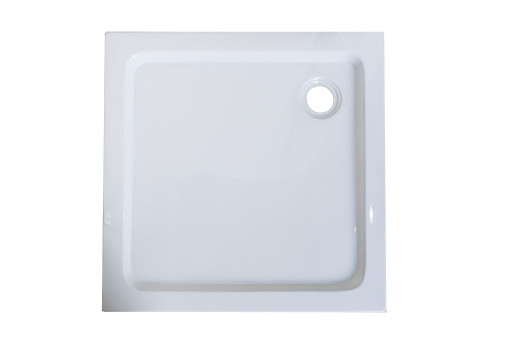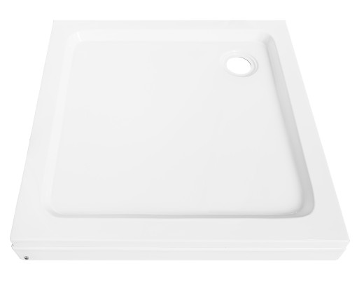 Szögletes, üvegszál erősítésű alacsony zuhanytálca (ABS) levehető előlappal, fém merevítéssel, extra erős fém lábakkal és szifonnal.