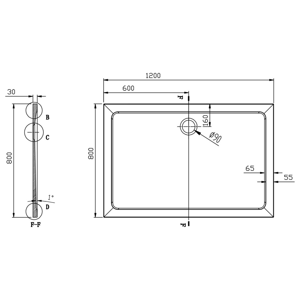 Négyszögletű öntött márvány zuhanytálca, csúszásmentes