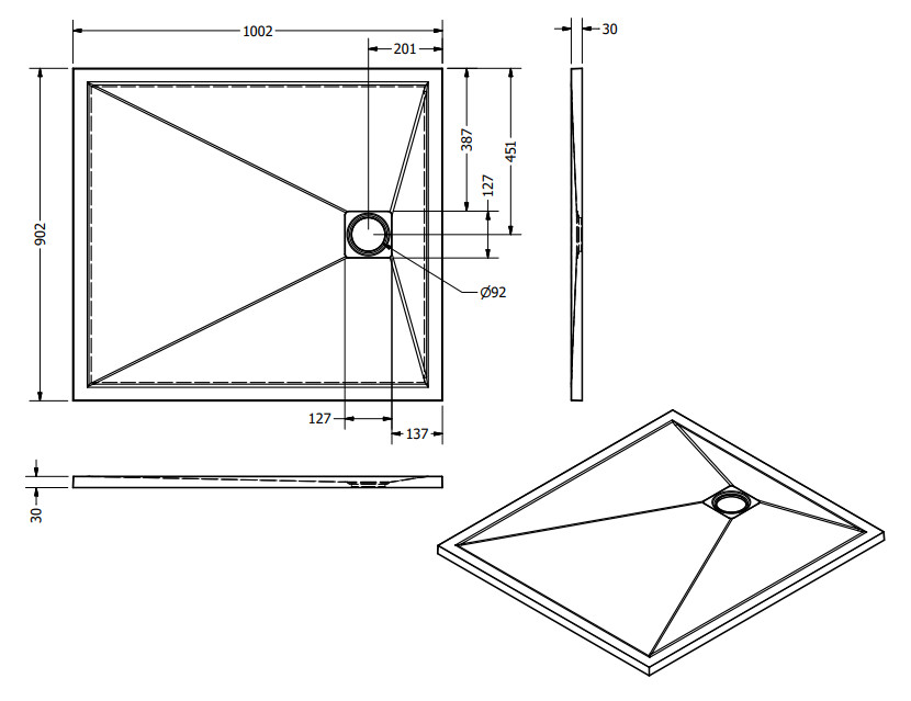 Zuhanytálca formája:
