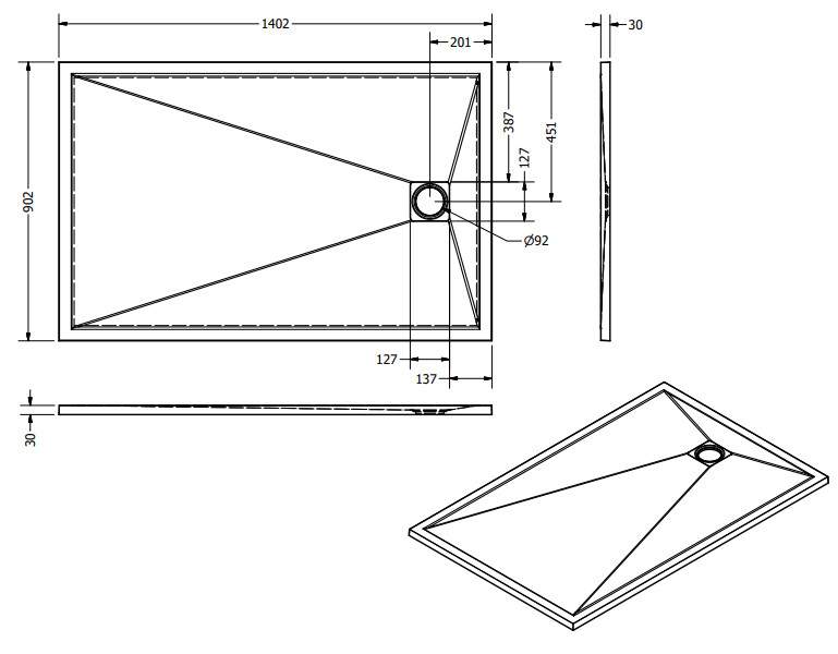 Zuhanytálca formája: