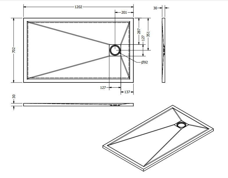 Zuhanytálca formája: