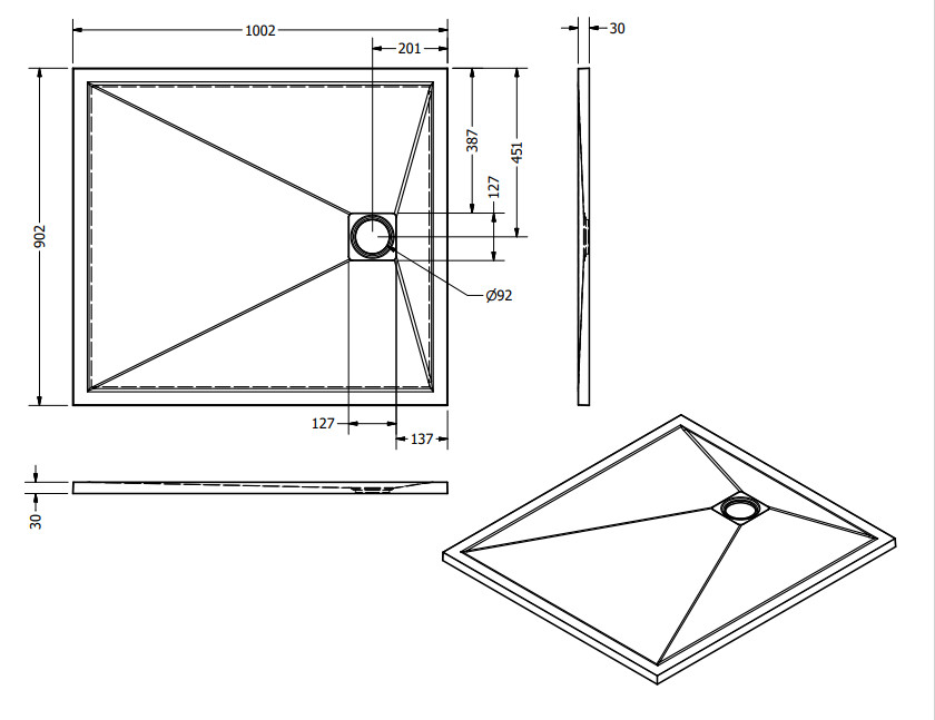 Zuhanytálca, West Zara 90x100 cm, fehér