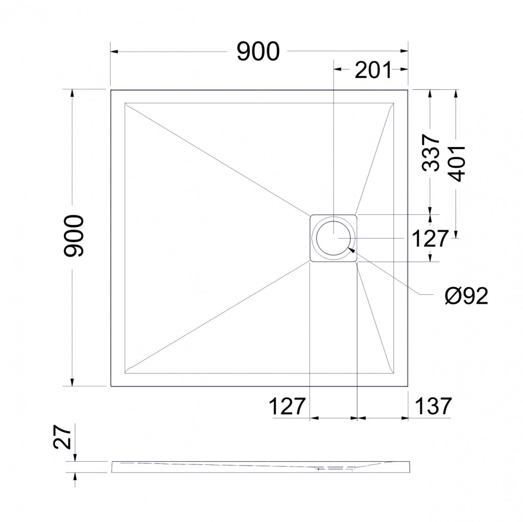 Zuhanytálca, West Zara 90x90 cm, fehér